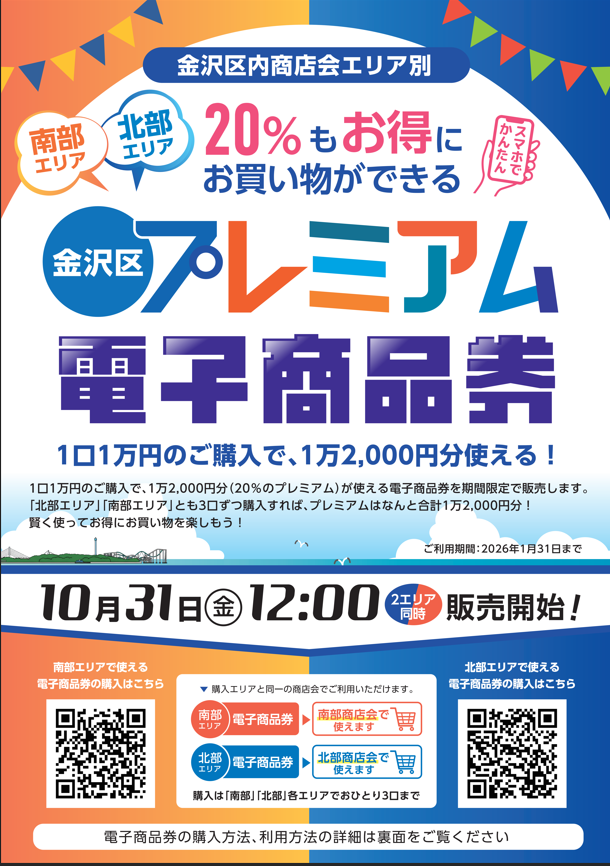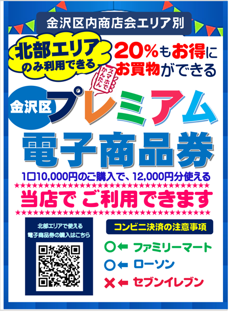 この度 金沢区商店街連合会は、2025年10月31日(金)~2026年1月31日(土)迄「金沢区プレミアム電子商品券事業」を開催致します。